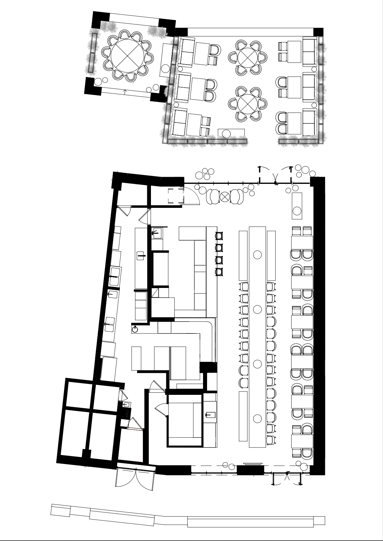 The idea of the space was to showcase Ukrainian traditions through the contemporary minimalistic context. An open kitchen with an authentic stove is decorated with white handmade tiles that were custom-made in a ceramic workshop in Lviv. Many dishes from the YOY menu are cooked according to the old recipes in the stove.
