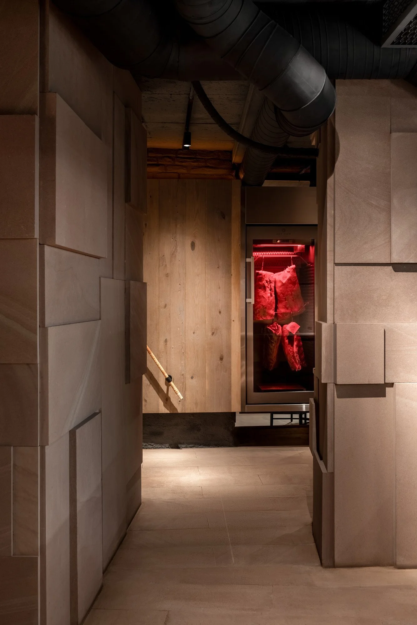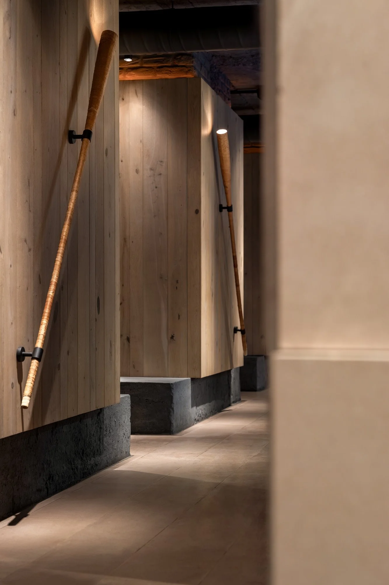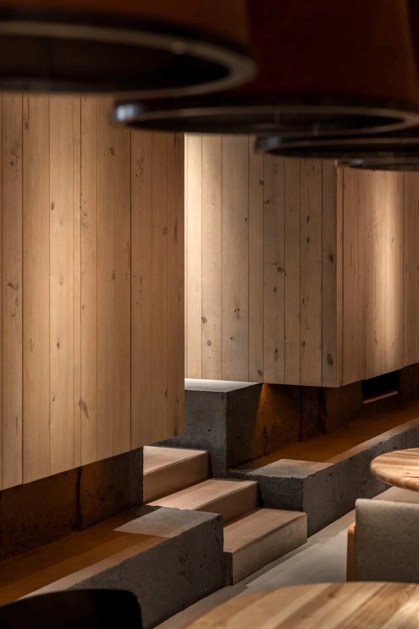 Конструктивні елементи фундаменту будівлі інтегровані у інтер’єр. У поєднанні з автентичними матеріалами, живими рослинами та світловими ефектами, вони формують атмосферу місця, що розкриває суть локальної ідентичності.