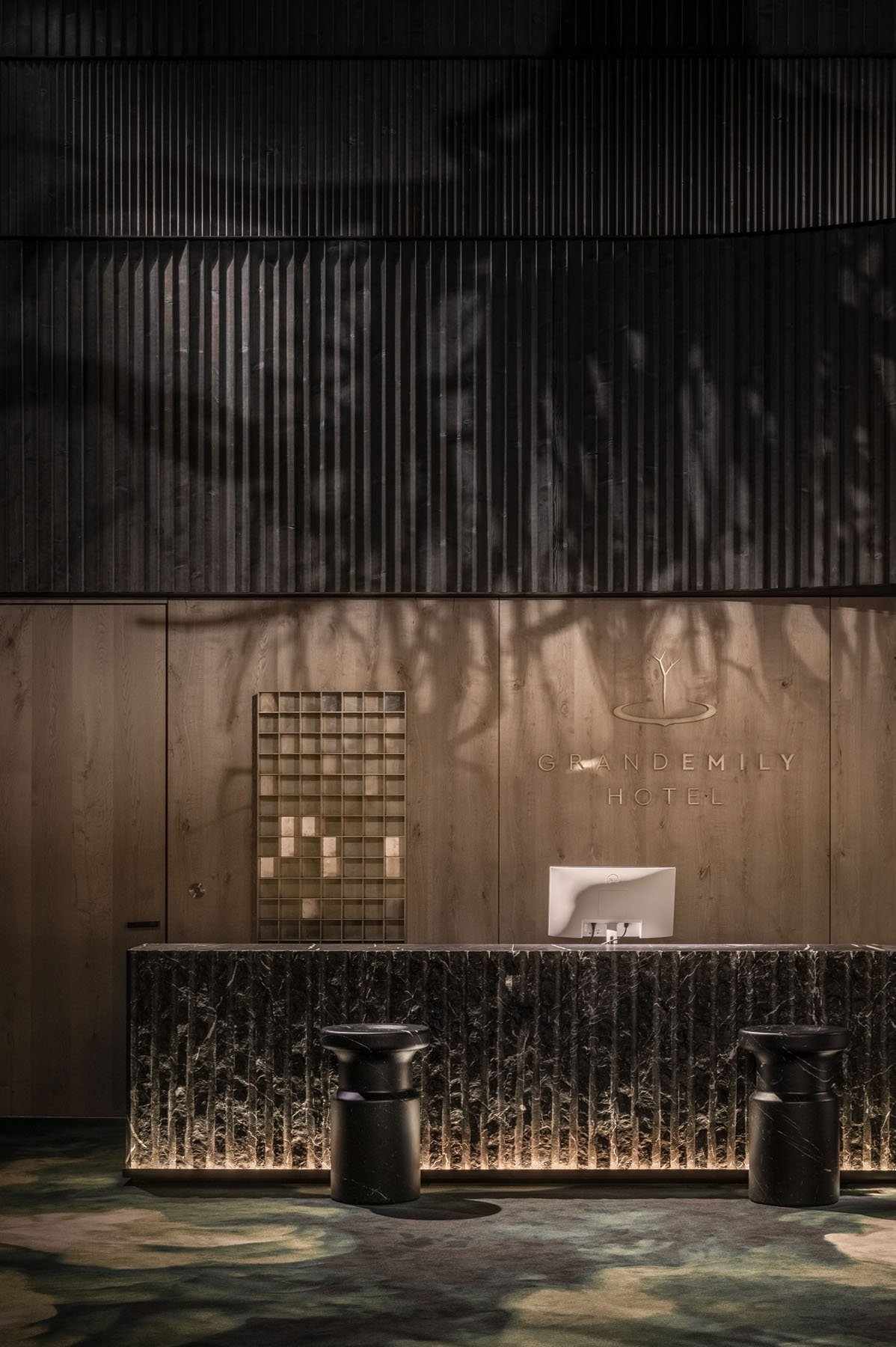 Ми відкинули ідею месивної люстри в атріумі, натомість вирішили розмістити там потужну символічну інсталяцію. Дерево – це завжди про зв’язок з корінням та родинні цінності, зростання та розвиток. Про заземленість та космос, міць стовбура та гнучкість гілок. Перед тим, як підвісити у холі готелю, дерево ретельно очистили, висушили та стабізували. Його форму відсканувалиу у 3D, щоб у візуалізаціях проекту дерево було таким самим, як у житті.