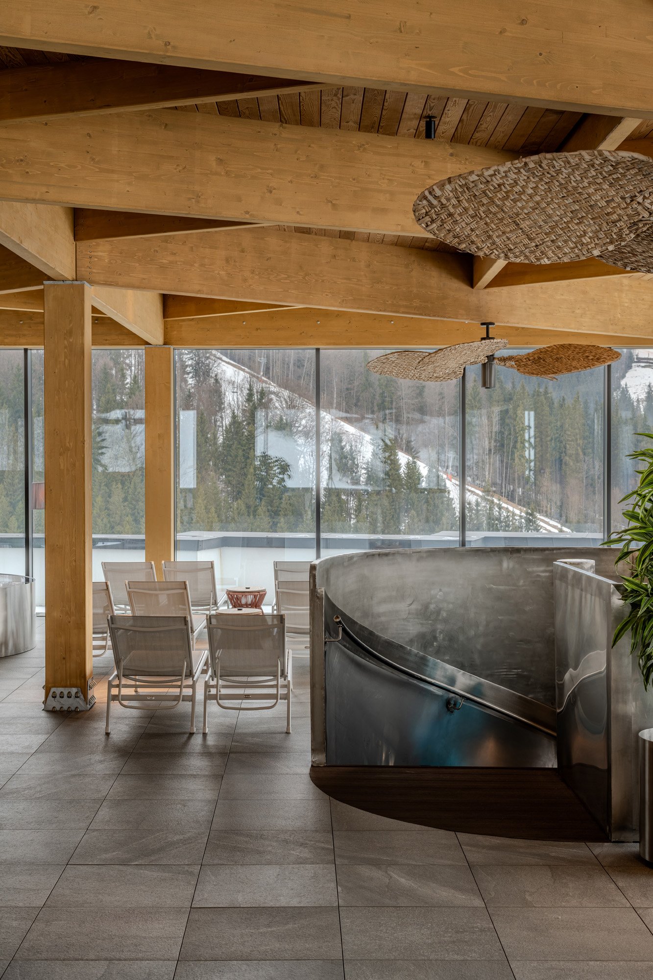 Romantic Lounge – це новий SPA-простір, розміщений в надбудові на даху готелю Mountain Residence. Цей зал з’явився вже після відкриття готелю як відповідь на потребу розширити зону розслаблення та відпочинку, щоб вмістити більшу кількість гостей. Нова зала органічно інтегрувалася в архітектуру готеля та поєднала функції релаксу, групових тренувань та споглядання природи.